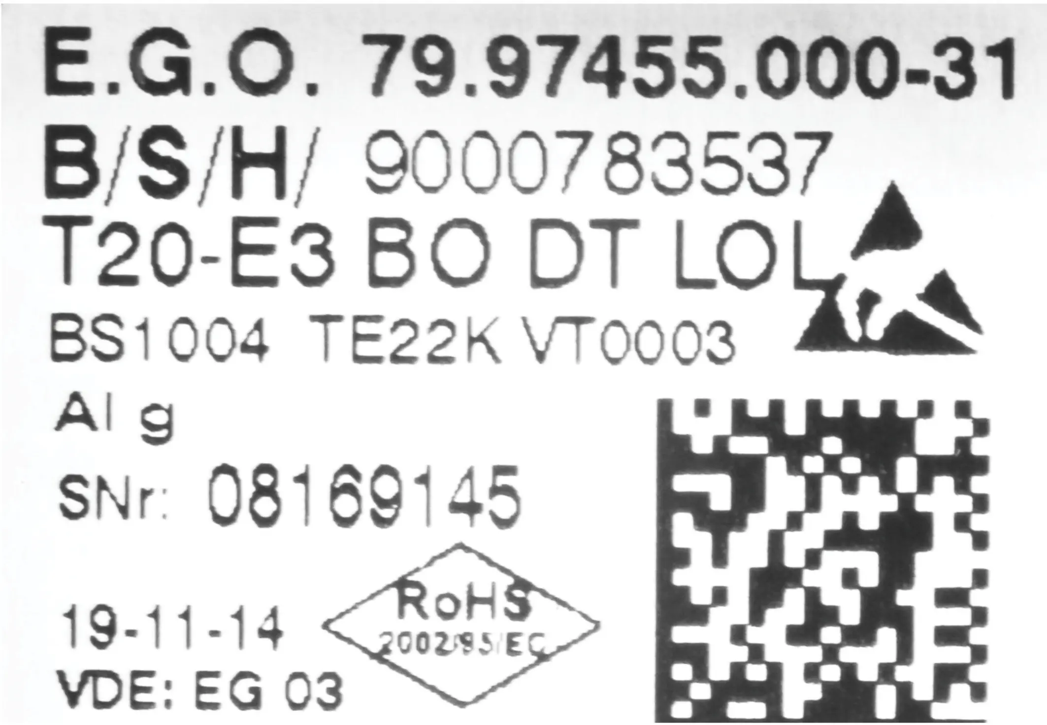 Control module TE22K BO VT0003 RL LOL00750592Replacement for