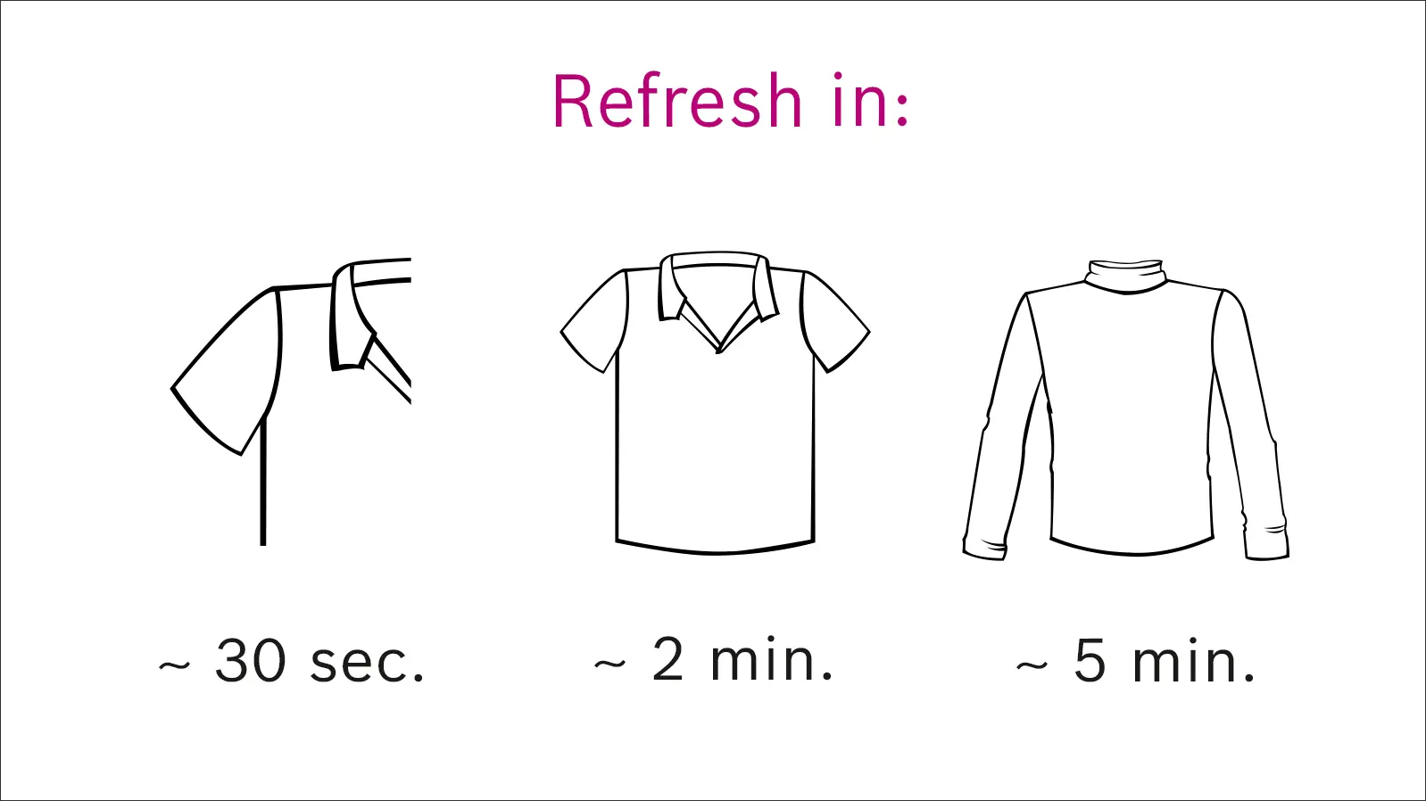 Instant fabric refreshment: refresh clothes without washing or added chemicals – anywhere, anytime.