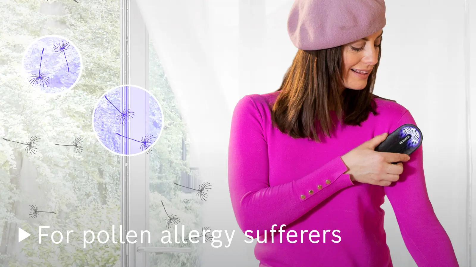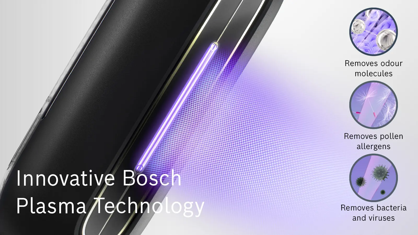 Bosch Plasma Technology: chemical-free plasma dissolves odour molecules, leaving clothes refreshed.
