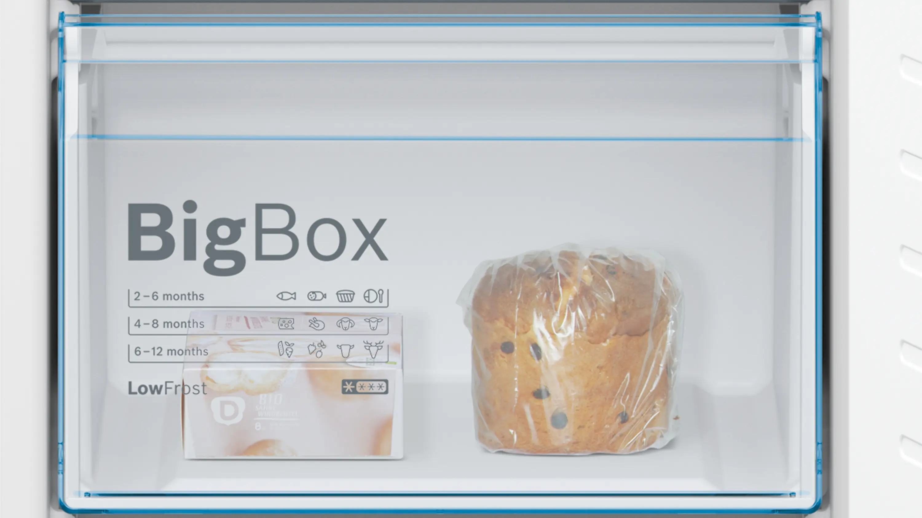 Big Box drawer: easily stack food containers and store larger items in your freezer.