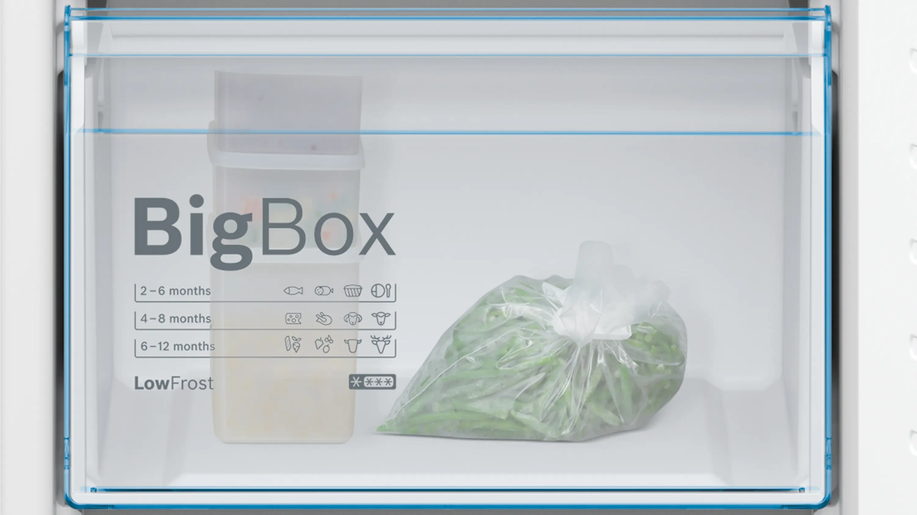 Big Box drawer: easily stack food containers and store larger items in your freezer.