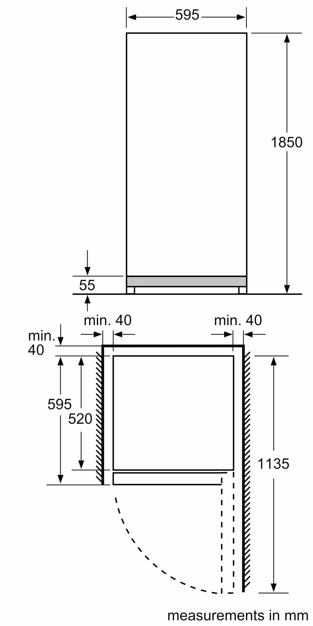1850x595x600 mm