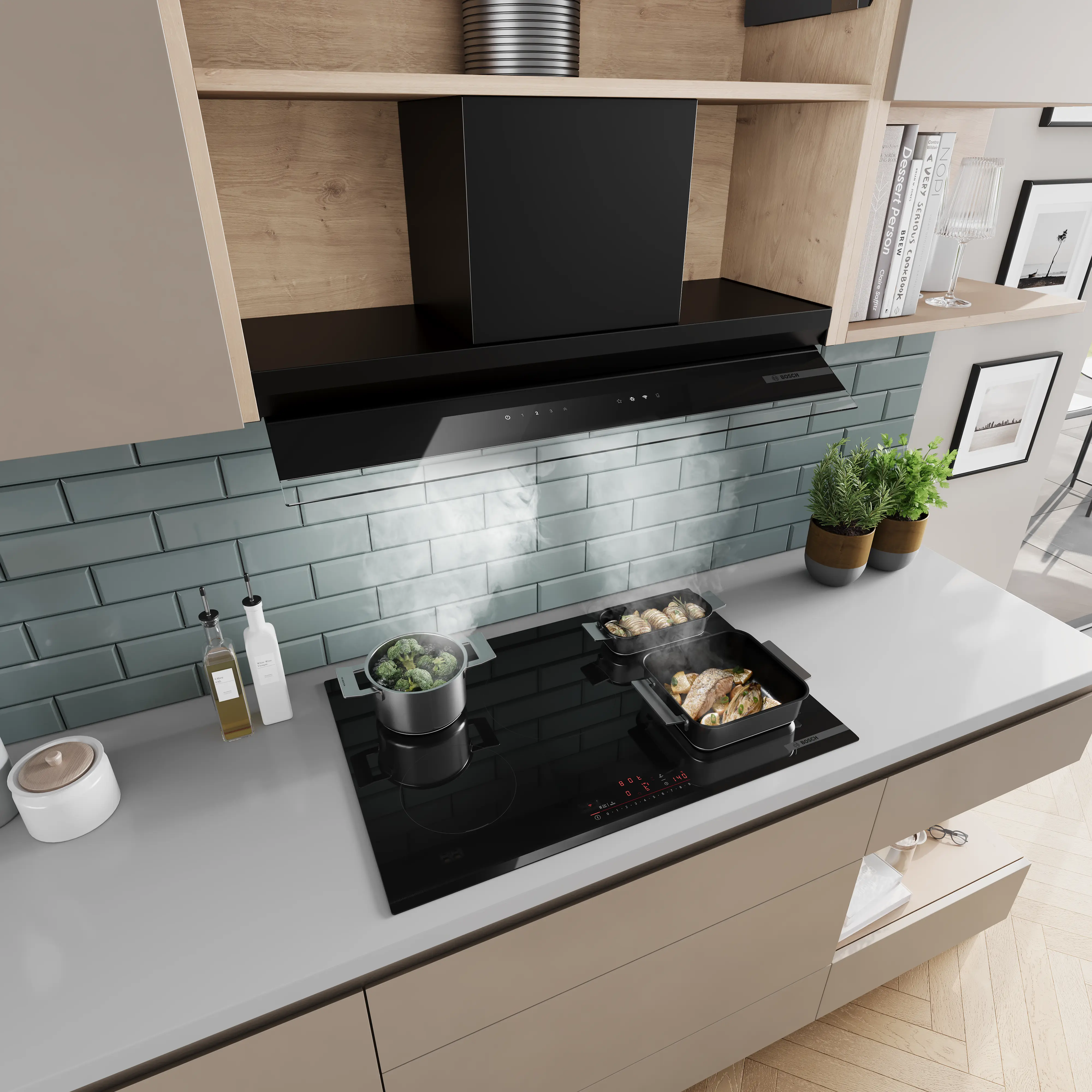 Series 6 Integrated Design Hood 90 cm clear glass black printed, Matt blackDBB97DP60B