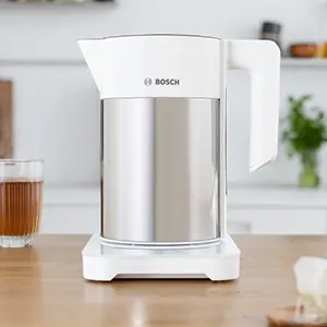 The electric kettle turns off automatically once the water has boiled, when the kettle boils dry, or when lifted off the base