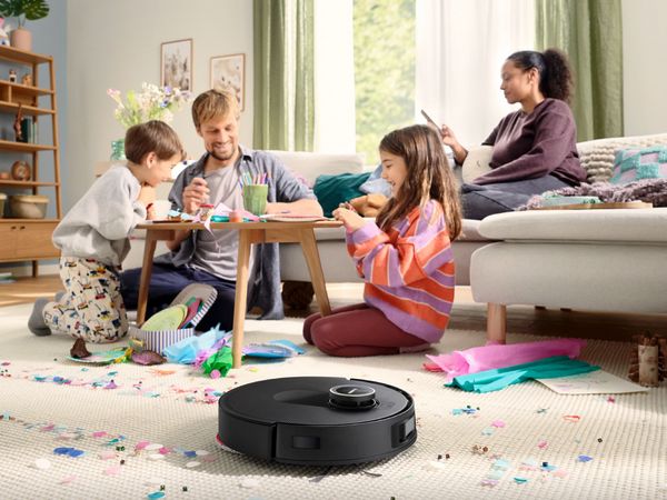 The Bosch Spotless is designed to clean a wide range of floor types, using advanced sensors to detect and differentiate surfaces. It intelligently adjusts cleaning power and pauses mopping mode when carpets are detected, ensuring optimal performance. While ideal for hard floors like hardwood, tile and laminate, it also effectively vacuums carpets. Users can customise the water flow by room or floor type using the Bosch Home Connect App, tailoring the cleaning experience to their specific needs.